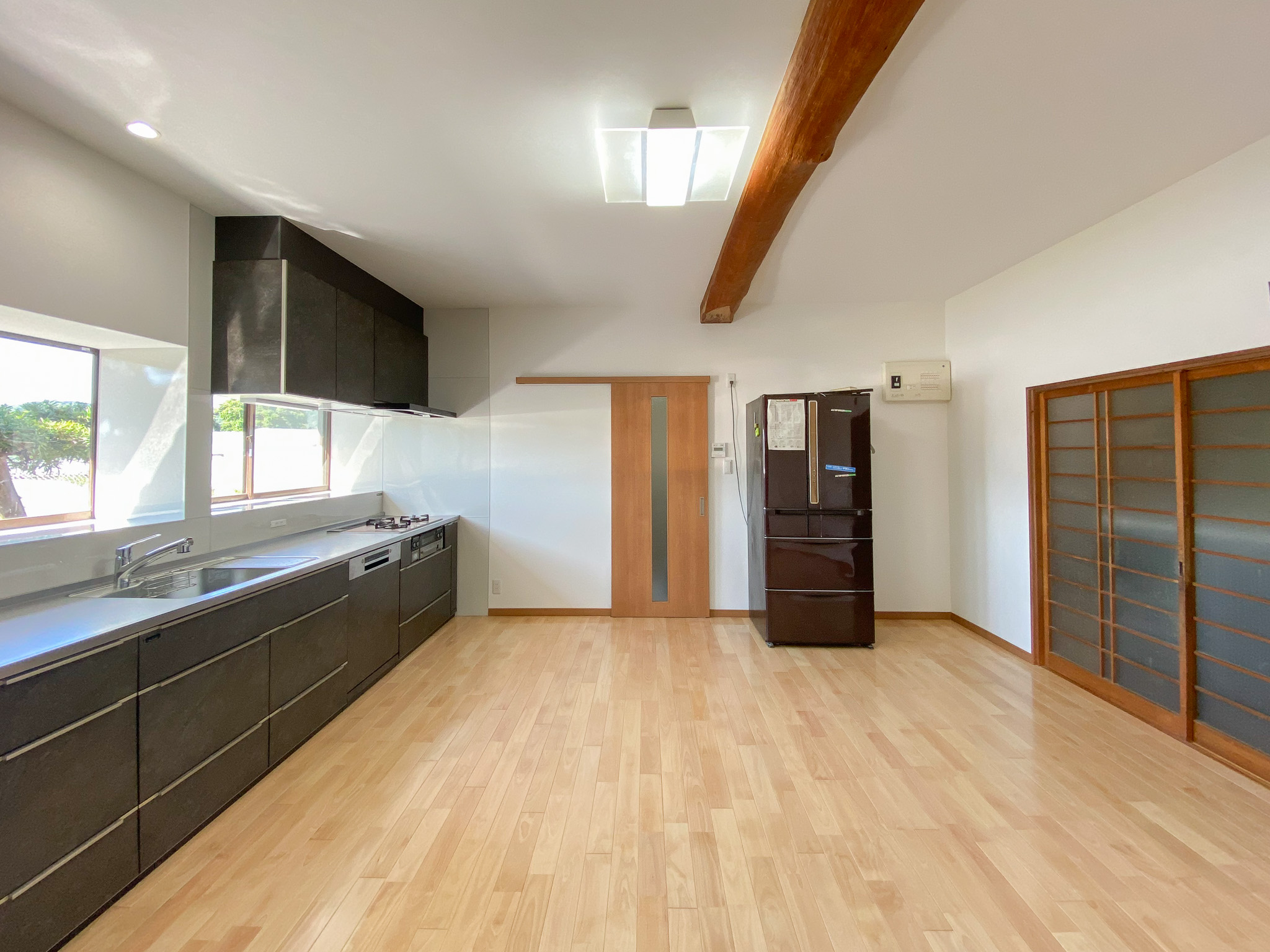 これにより、調理や片付けがしやすく、使い勝手が大幅に向上しました。また、キッチンの交換と同時に床、壁、天井も新たに仕上げ、明るく清潔感のある空間を実現。