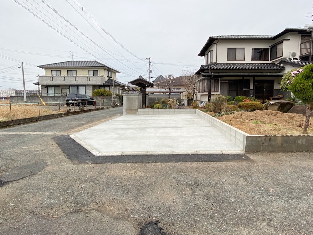今回のリフォームでは、道路に面した庭の一部を駐車場に変更しました。通行や周辺の住環境に配慮し、工事にあたっては近隣のご家庭と事前に調整を行い、安全で円滑に進めることを重視しました。