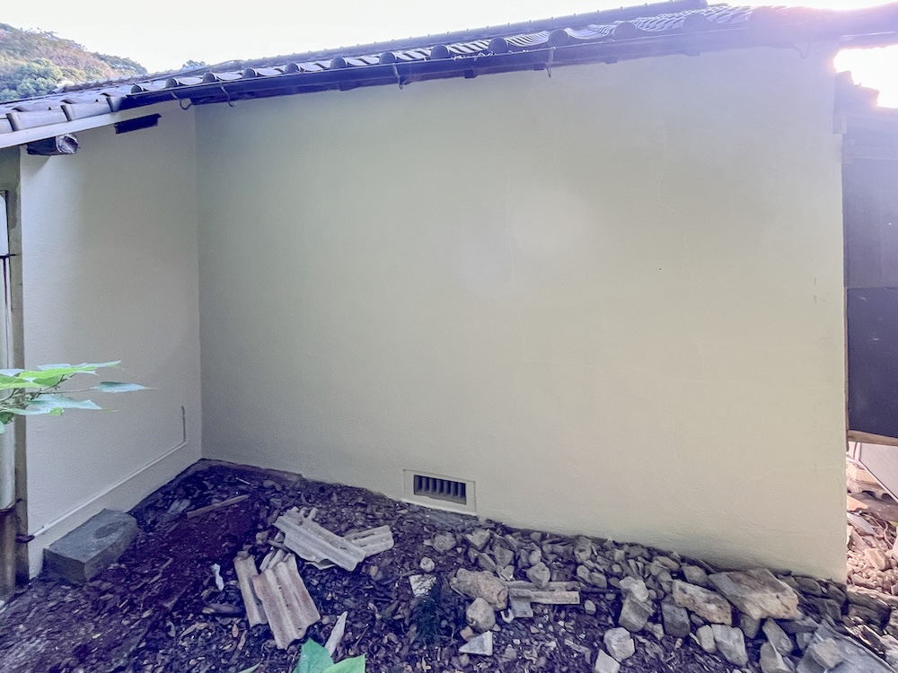 今回の施工事例では、中古住宅の外壁と庇屋根を補修しました。建物が古く、解体作業を進める中で想定以上の劣化箇所が見つかることもありましたが、その都度お客様と詳細な打ち合わせを行い、適切な補修方法を提案。ご予算に合うよう調整しながら、劣化部分を丁寧に修復しました。
