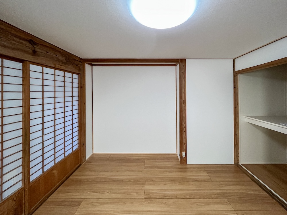 今回のリフォーム事例では、お子様の里帰り時に快適に過ごせる宿泊空間を作るため、和室を全面改修しました。天井、壁、床、サッシを新たに仕上げ、明るく快適な空間に生まれ変わりました。